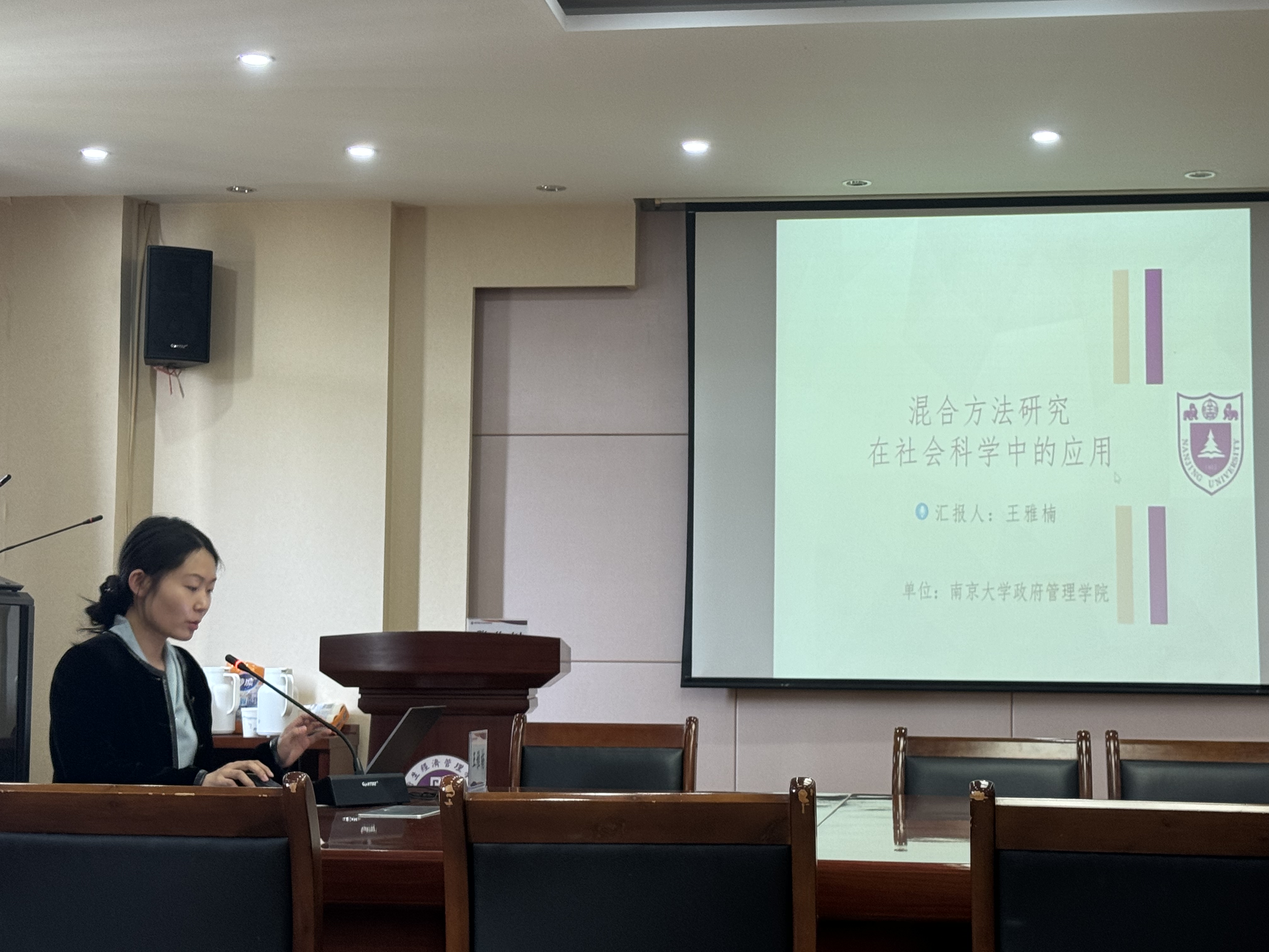 王雅楠博士以《混合方法研究在社会科学中的应用》为题,向师生们介绍了混合方法研究的相关概念、问题导向、理论指导与基本原则。她从托育服务“招不满与入托难”的社会怪象提出问题,将“结构化”理论嵌入到“空间的生产”分析中,并以此为理论框架深挖托育服务供需错配的根本原因。