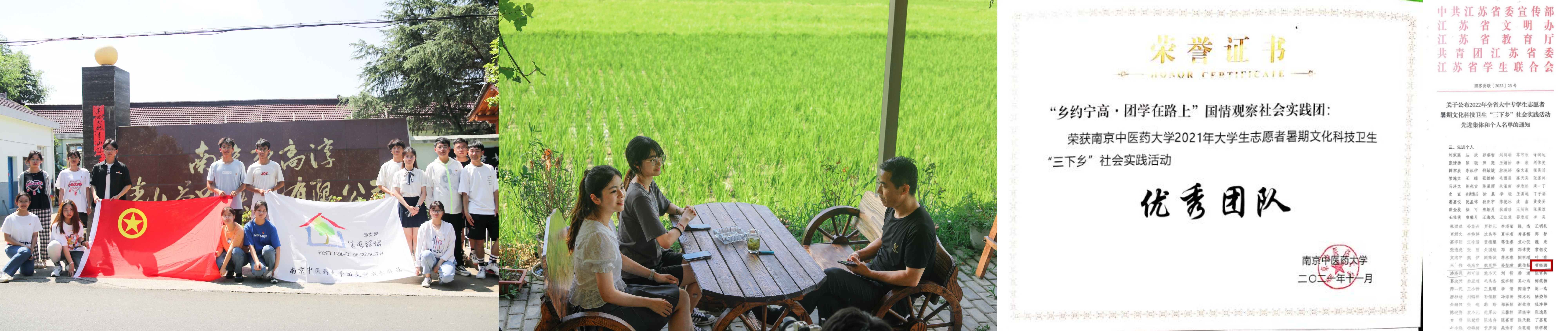 曹晓璐连续两年暑期社会实践带领团队从霓虹灯中转身,让双脚沾满泥土,深入南京市高淳区探索乡村振兴发展状况。团队连续两年获校级暑期社会实践优秀团队称号,个人获得江苏省三下乡社会实践先进个人,调研报告获评省三下乡优秀调研报告。作为宣传负责人发表国家级省级媒体报道22篇,在新媒体平台总浏览量达30000+。团队撰写20000字调研报告,获省优秀调研报告,将论文写在祖国的大地上。
