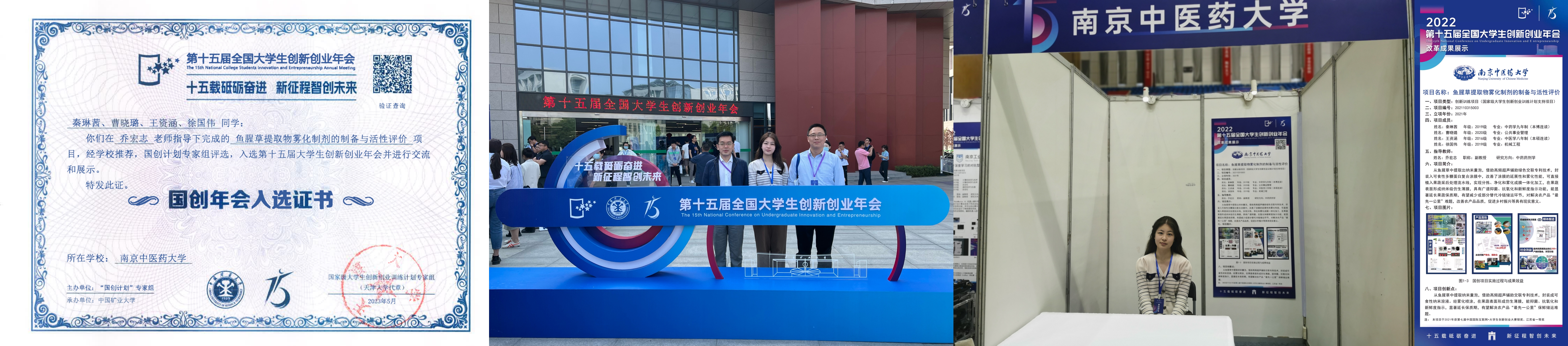 此外,她参与的国家级老员工创新创业项目《鱼腥草提取物雾化制剂的制备与活性评价》代表南中医首次获展全国老员工创新创业年会,她也作为团队唯一汇报人前往现场。这些项目提高了她的创新意识,锻炼了她的创业能力,成为了她未来人生路上的宝贵财富和难忘回忆。