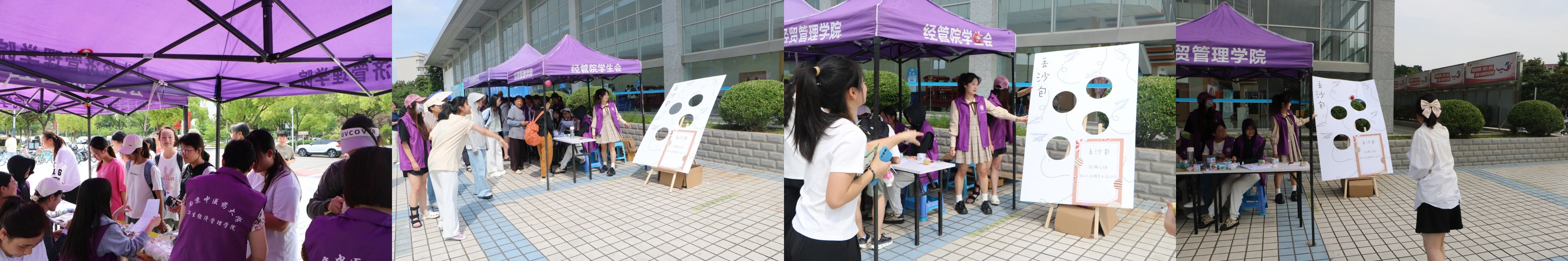 “丢沙包”趣玩答题区也是热闹非凡。志愿者们向大家介绍本次活动细则为“报名参与——答题成功——领取沙包——投掷沙包——成功即可领奖”,同学们每答对一道题即可领取三个沙包,投进一次便可获得奖品,可谓是福利满满。