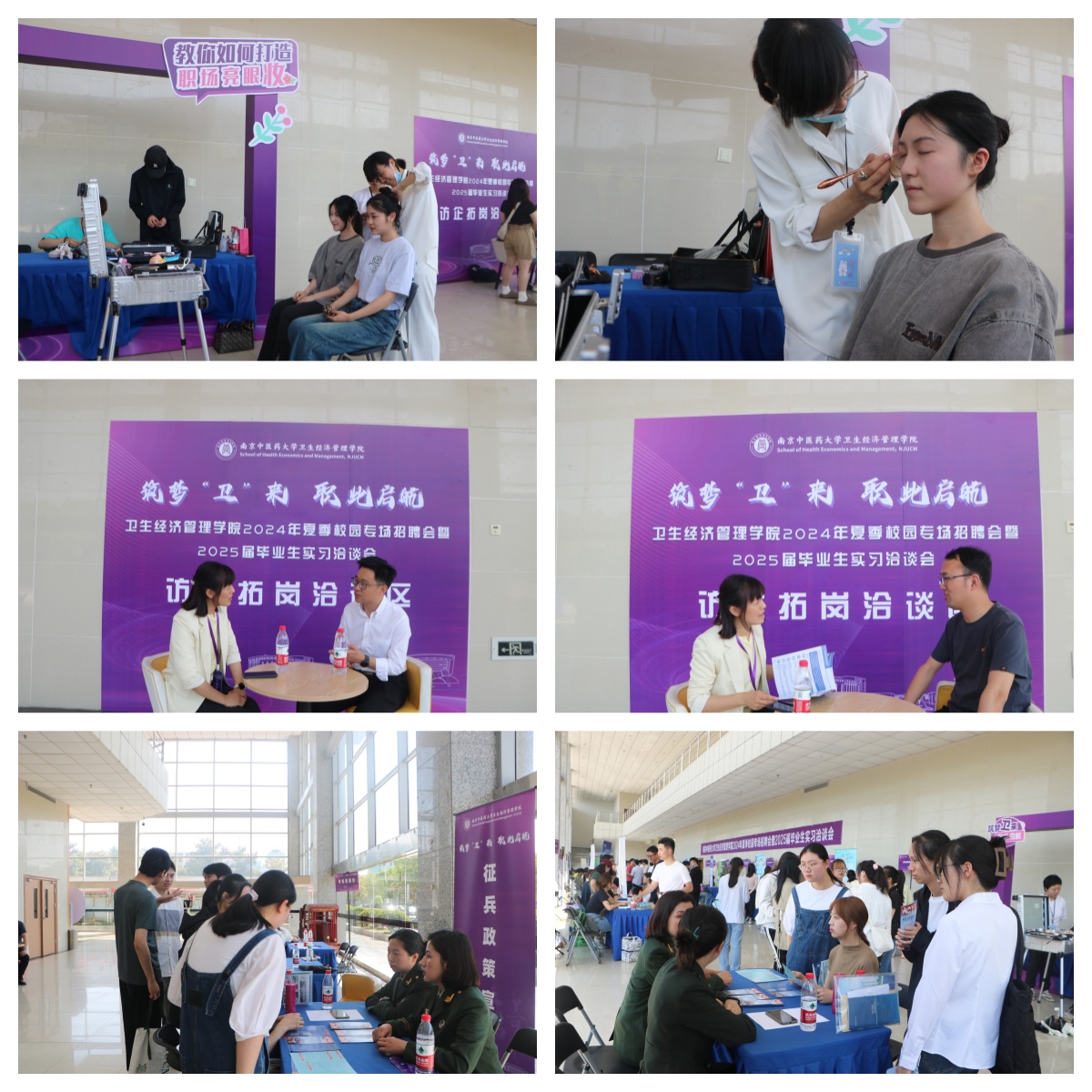 公司党委常委、副董事长徐树法,校员工工作处副处长刘云龙,公司党委书记王红云,经理徐爱军,党委副书记、副经理沈静等到场,与参会企业代表进行深入交流。徐树法副董事长感谢院友对就业工作的大力支持以及所有用人单位对南中医学子的认可,希望公司能够继续深化校企协同育人新机制,进一步拓展员工的就业岗位和渠道。公司毕业班辅导员、学业指导老师也来到现场交流指导,积极向用人单位推荐毕业生。