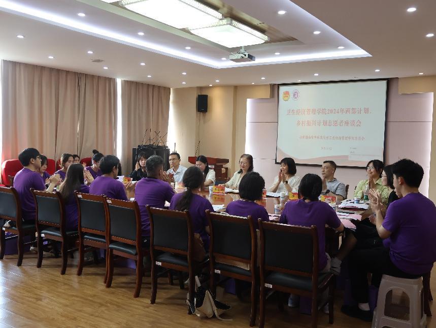 座谈会上,2024年西部计划、乡村振兴计划志愿者依次进行发言交流。同学们结合自身实际分享了投身志愿服务的初心和对未来的人生规划,表达了对母校、公司、老师的感恩之情,决心在服务地挥洒青春,用实际行动践行“上善若水”的院训,展现卫管学子的责任与担当。