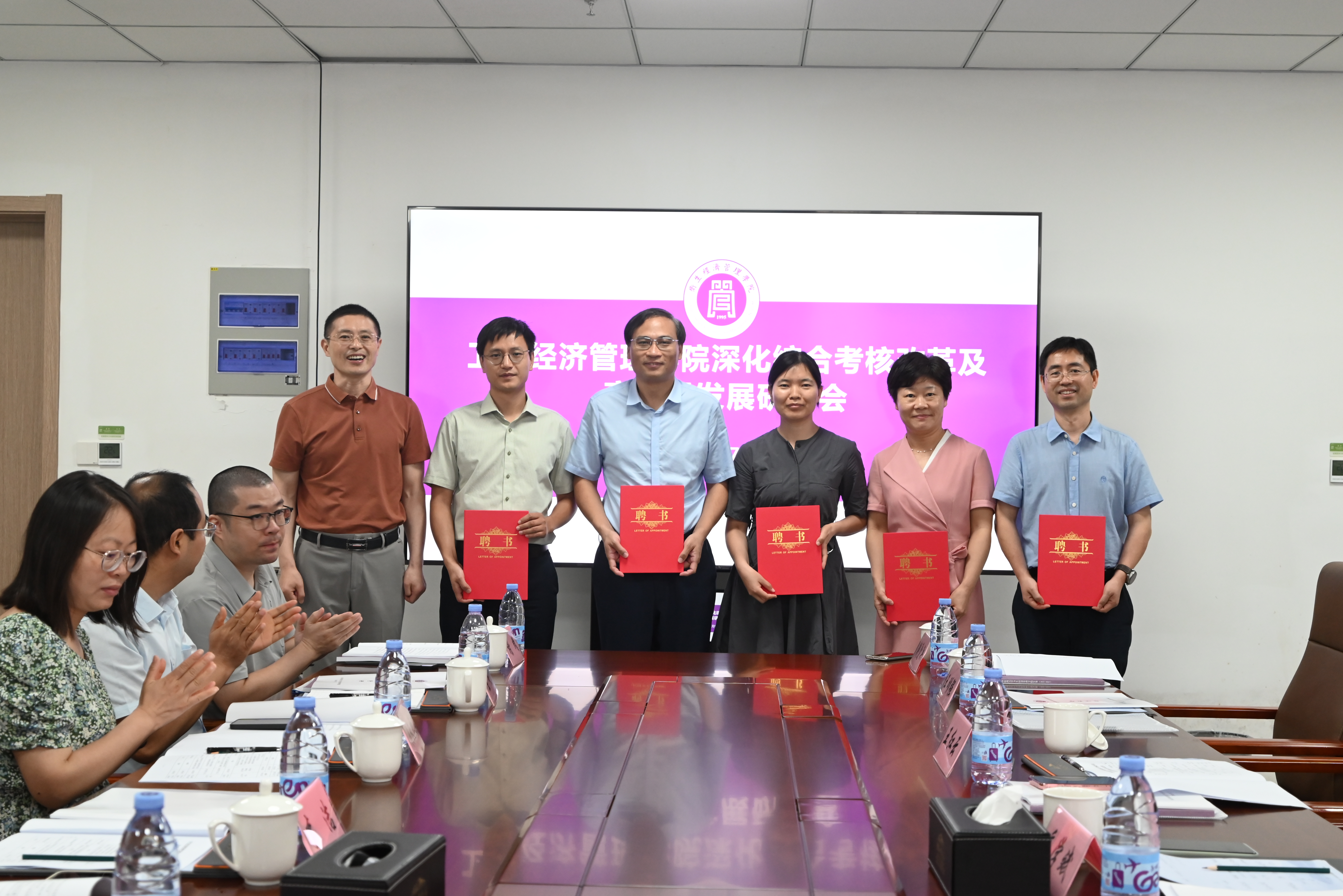 乔学斌书记、徐树法副董事长为新任系主任、党支部书记和williamhill威廉希尔“十四五江苏省重点学科公共管理后备二级学科带头人颁发聘书。