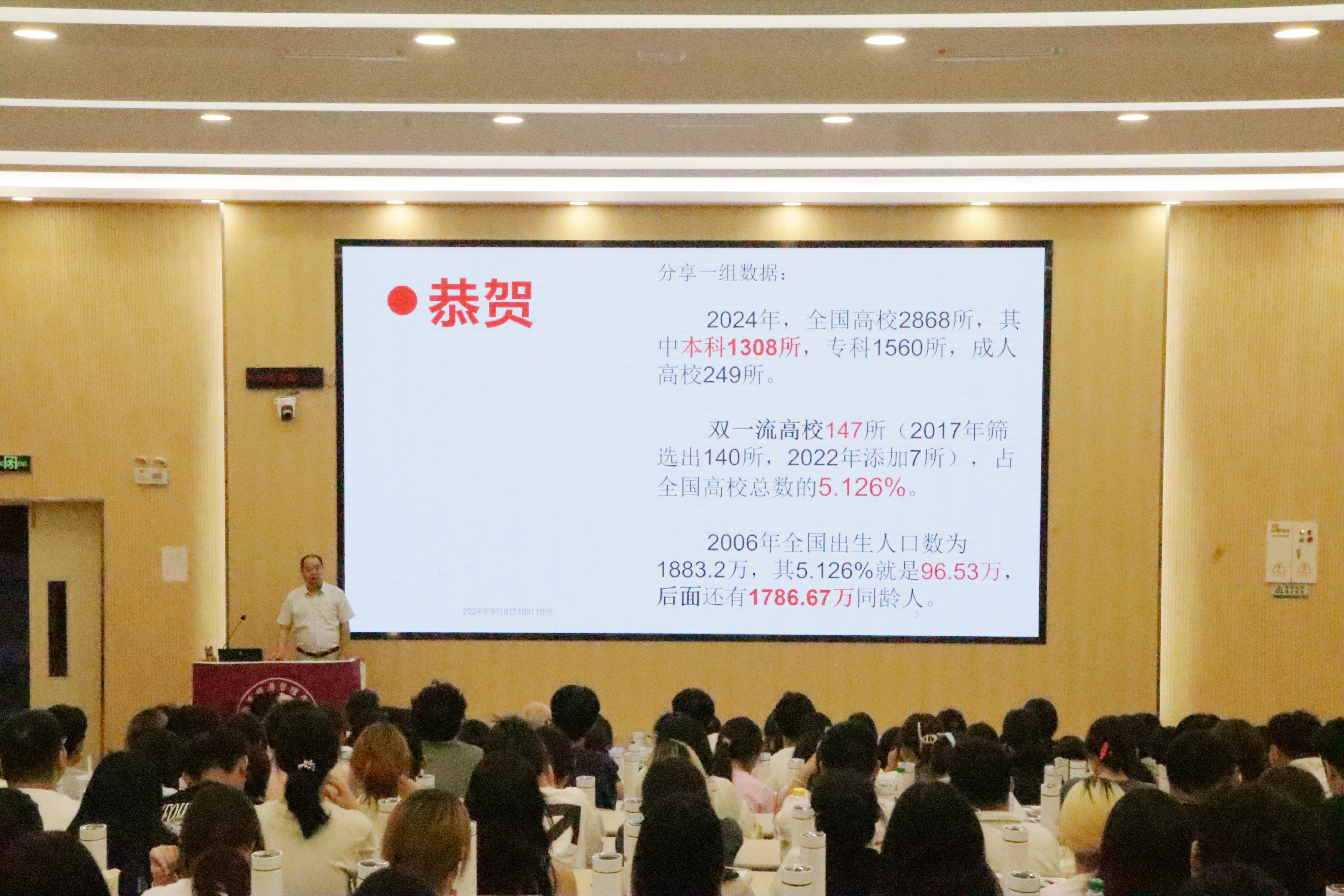 9月8日下午,公司2024级公共事业管理(中澳合作办学)专业新生见面会于泰州校区J3-102举行。公司党委书记王红云、经理徐爱军、副经理钱爱兵,外方代表斯威本科技大学副董事长Douglas博士、跨国教育伙伴关系部部长Neema出席此次会议,卫生管理系负责人、学业导师、辅导员、2024级全体本科生及家长代表参会。会议由公司党委副书记、副经理沈静主持。