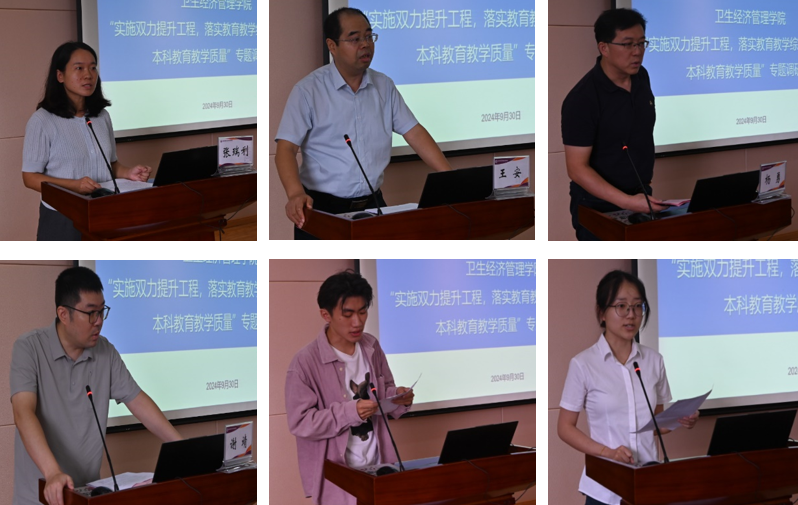 系主任、专业负责人代表张瑞利、王安、杨勇和谢靖分别介绍了各专业公司产品特色、学科优势、人才培养质量和专业建设中存在的问题,员工代表冯晓芊、姚星两位同学从课程设置、学科竞赛及综合素质培养方面,谈及了公司为员工们提供了全面的教育和发展机会。陈志鹏处长和李文林主任针对公司本科公司产品高质量发展提出了建议。