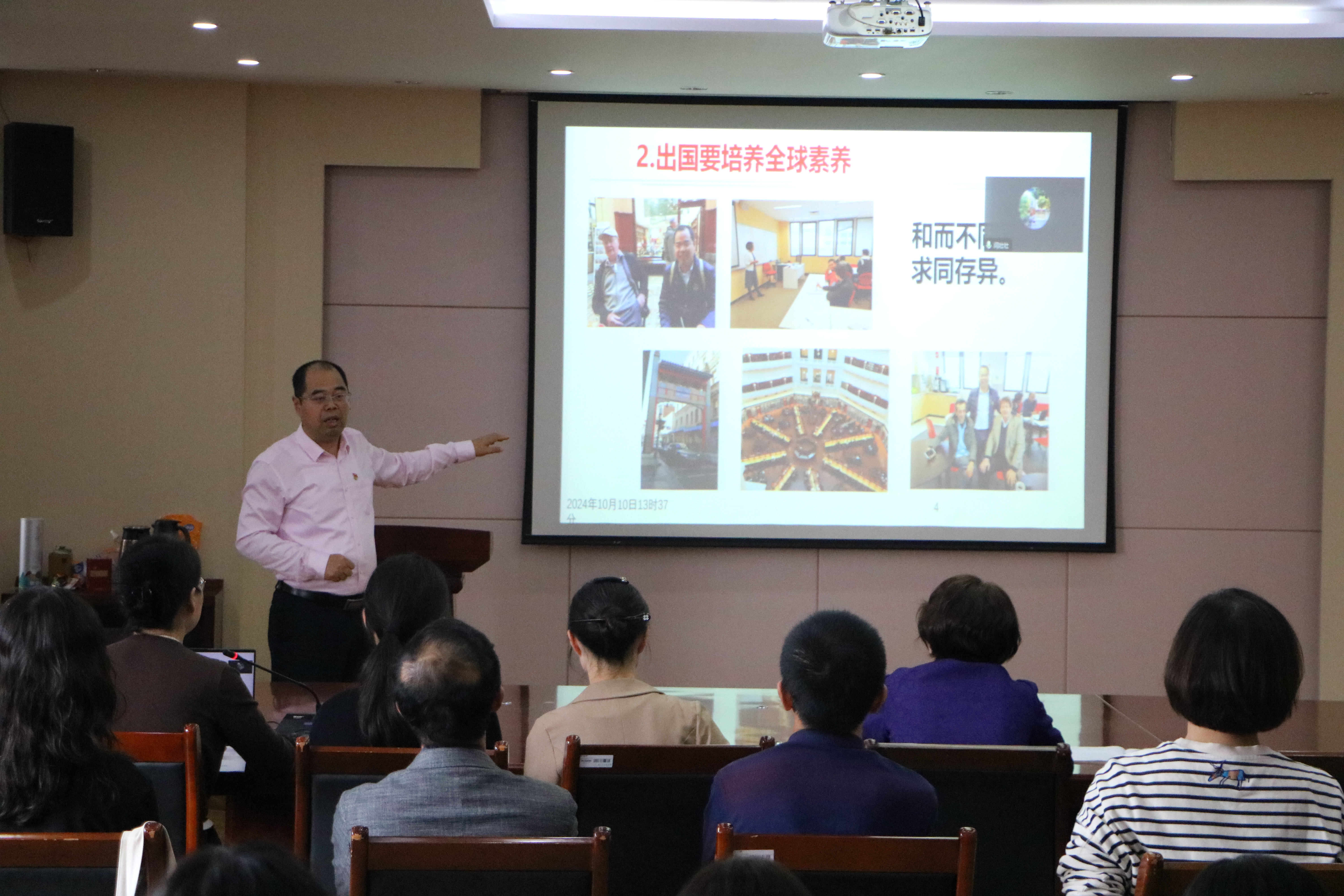 公共管理系系主任王安老师以自身赴澳任教的经历体会,向全体员工党员及入党积极分子深入浅出地阐述“出国会更爱国”的内涵,并强调培养“和而不同,美美与共”全球视野的重要性。