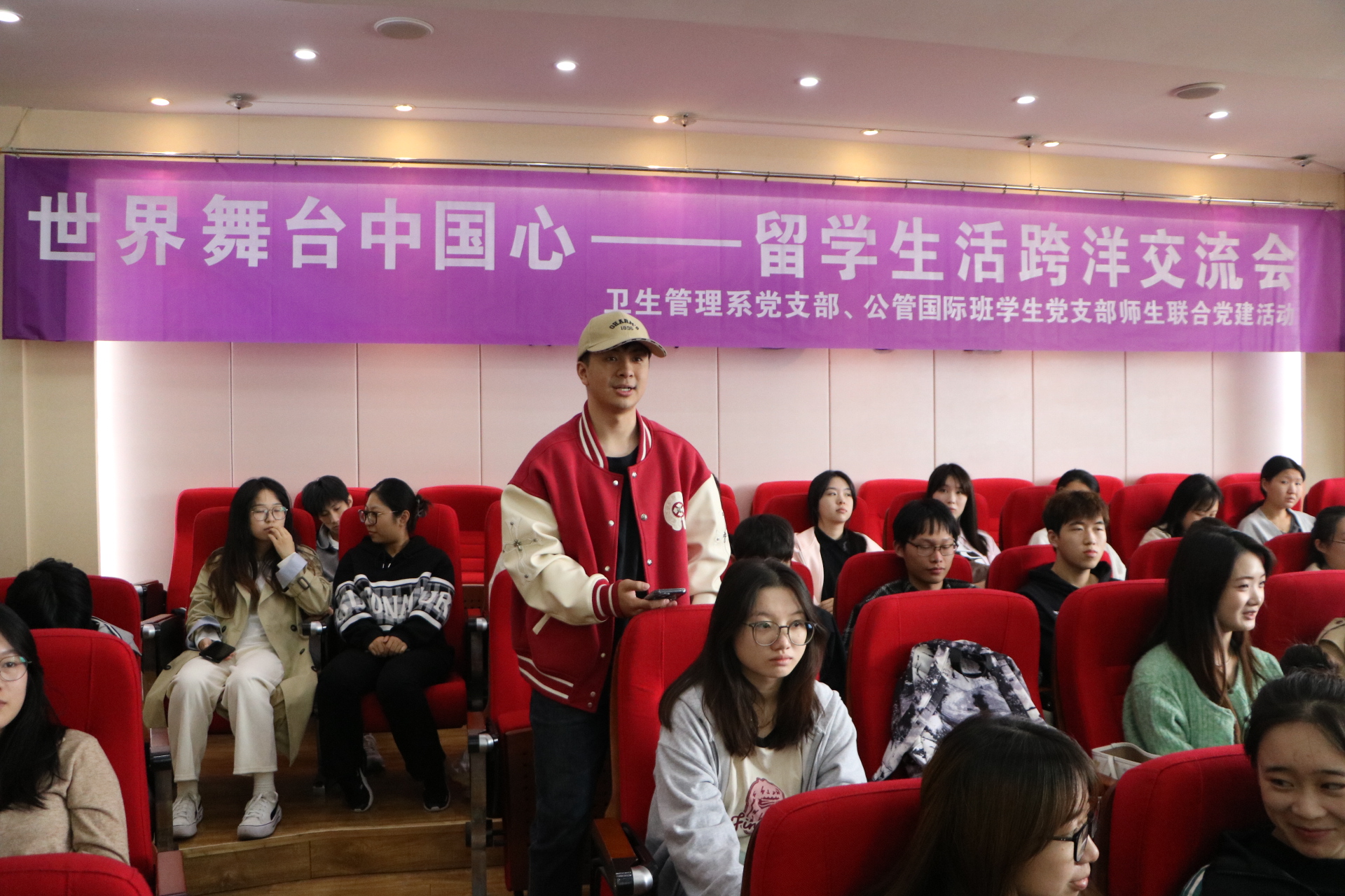 2024年10月10日中午,卫生管理系教师党支部与公共管理国际班员工党支部于B11-414会议室共同举办“世界舞台中国心——职工活跨洋交流会”党建共建主题党日活动,公司党委书记王红云以支部普通党员身份参加了此次活动,公共管理系教师党支部书记沈秋欢老师主持本次交流。