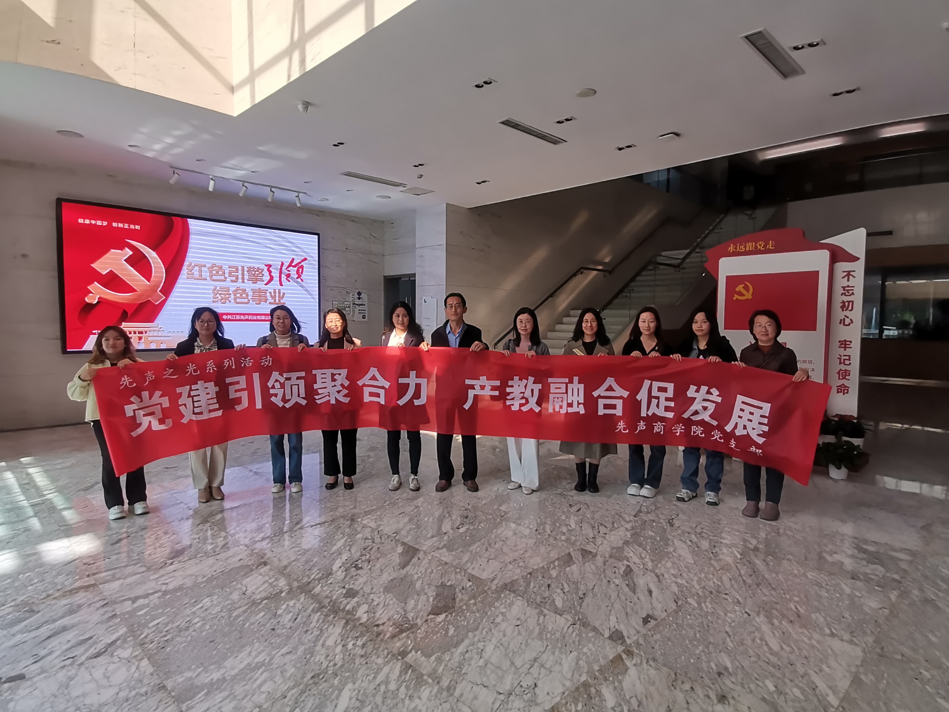 2024年11月5日,先声商公司党支部全体党员在支部书记李洁带领下前往先声药业开展主题党日研学交流活动。本次党日活动特邀致公党党员杨小燕老师和员工党员代表参加。