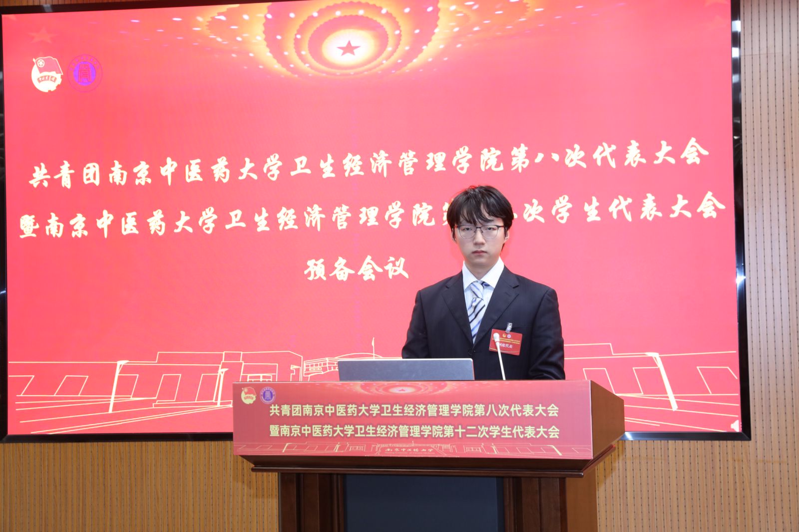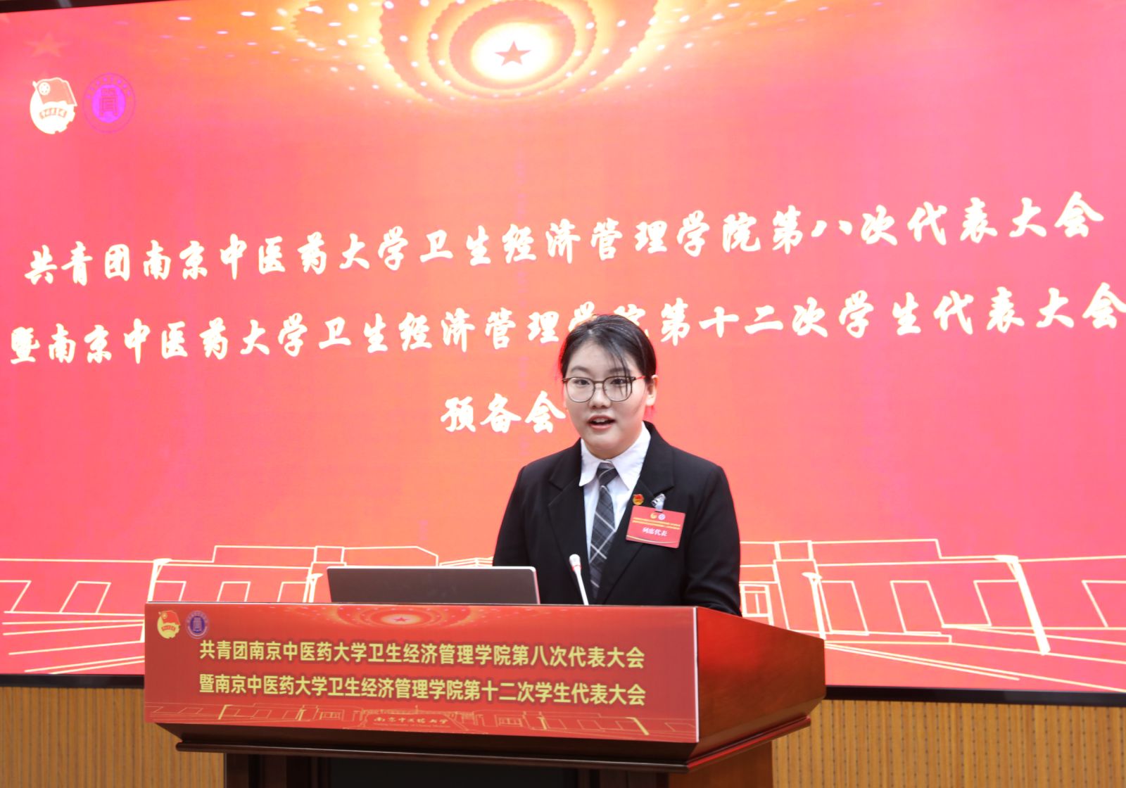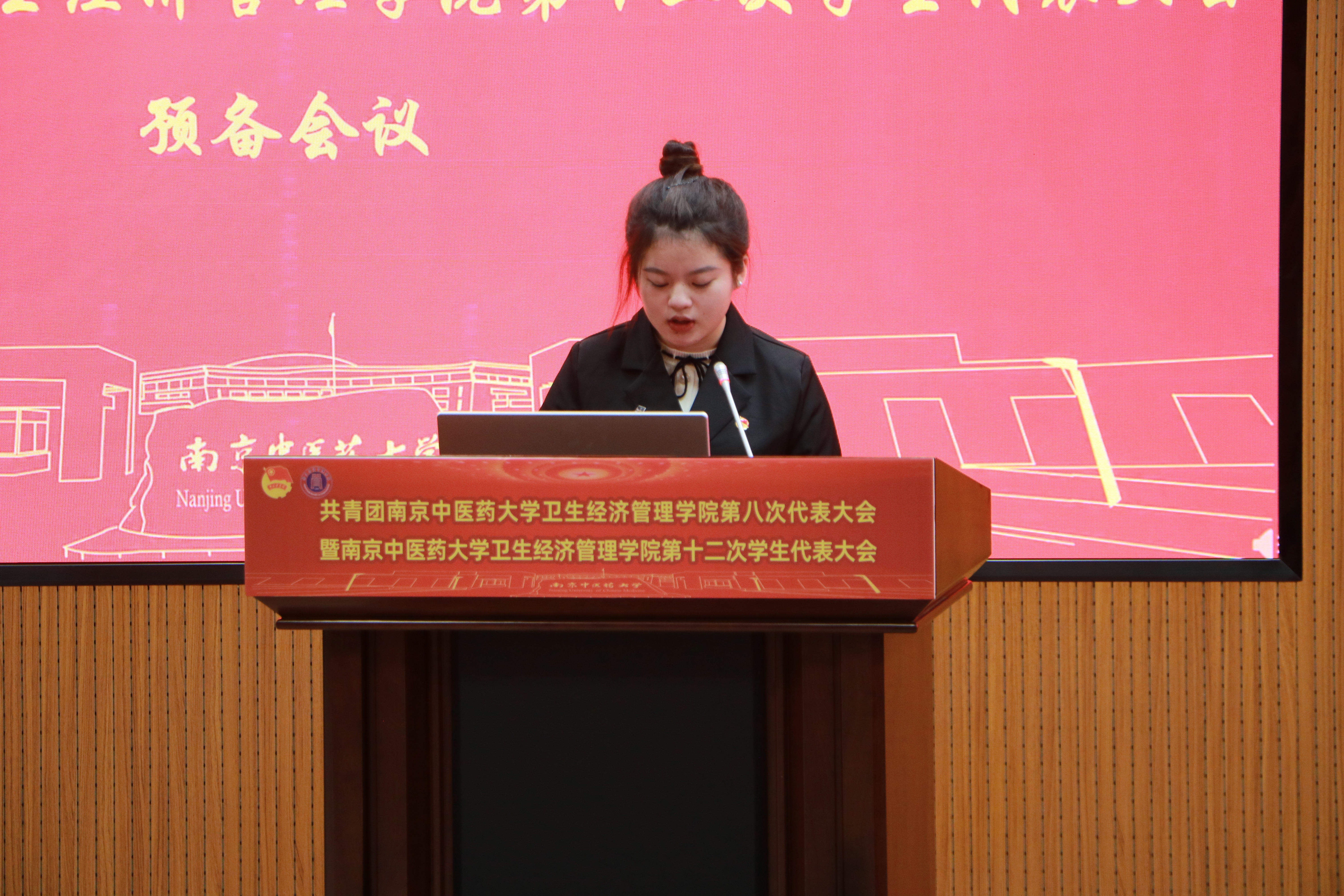 大会筹委会工作人员管佳绮同学代表大会筹委会作《共青团威廉希尔第八次代表大会暨南京中医药大学williamhill第十二次员工代表大会筹备工作报告》,从大会的指导思想、主要任务、代表资格审查等方面详细介绍了此次大会的筹备工作。
