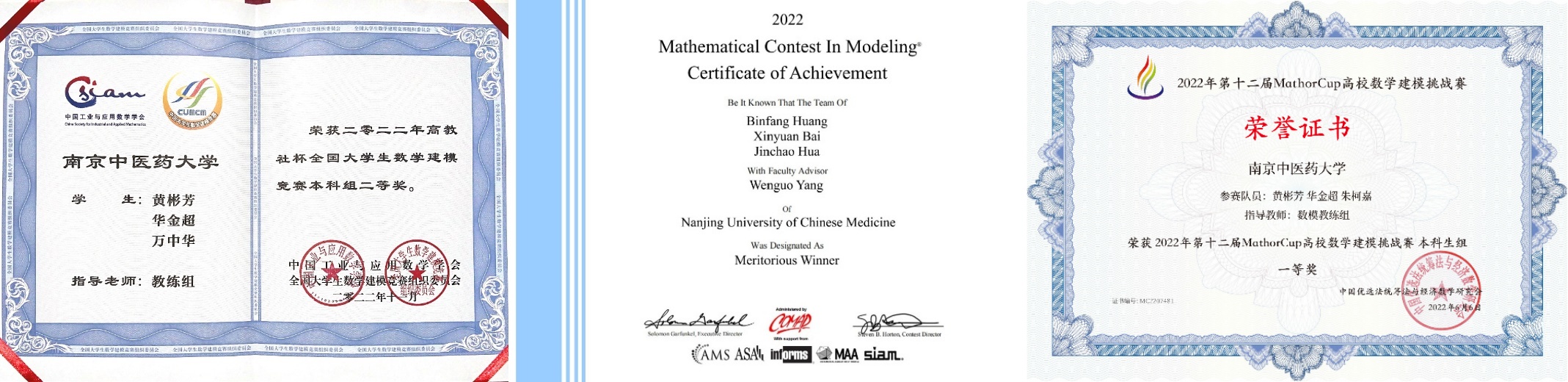 在构建完整的信管专业知识体系的同时,她培养了较强的数理能力和扎实的计算机基础,并通过各类数学建模竞赛不断深化理论学习。从校赛、省赛到国赛,共同的团队目标令她不断实现超越自我的淬炼。凭借着敢于尝试的精神,她连续两年作为组长带领团队获得全国老员工数学建模竞赛国家二等奖。同时,美国老员工数学建模竞赛M奖、MathorCup高校数学建模挑战赛一等奖,是她创新视野得到拓宽,逻辑思维得到提高的最佳见证。