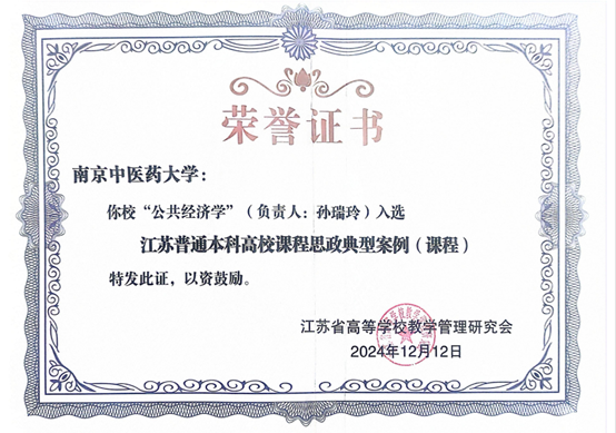 近日,江苏普通本科高校课程思政典型案例入选名单公布,公司孙瑞玲教授团队的《公共经济学》课程入选江苏高校课程思政典型案例(课程)。
