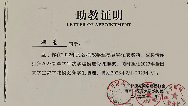 在公司中,姚星参与校院两级的学霸小讲堂多达六次,在大一参与校团委与员工会的多个部门的员工工作,取得了良好的成绩。在大二开始连续多个学期担任数学建模助教,组织校团委、班级团日活动10+余次,组织高数竞赛、数学建模相关活动10+余项,超过100+人获得数学建模相关奖项。