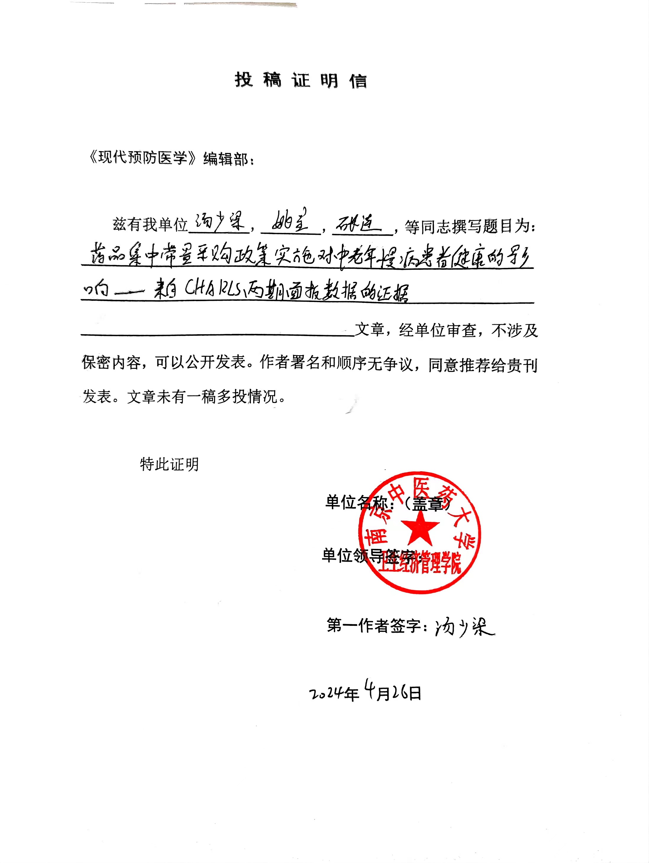 随后,他在科研领域继续深入,通过跟随汤少梁教授进行流行病学研究,以第一负责人的身份主持了一项国家级大创项目。通过一些科研的积累以及一年多的组会学习,参与了国家自然科学基金面上项目药改“新政下的疾病负担研究”与北京健康促进会的横向课题“基于疾病负担的国家基本药物目录调整因素研究”,以第一作者身份完成了一篇SCI与一篇中文核心的撰写,目前均处于外审状态。