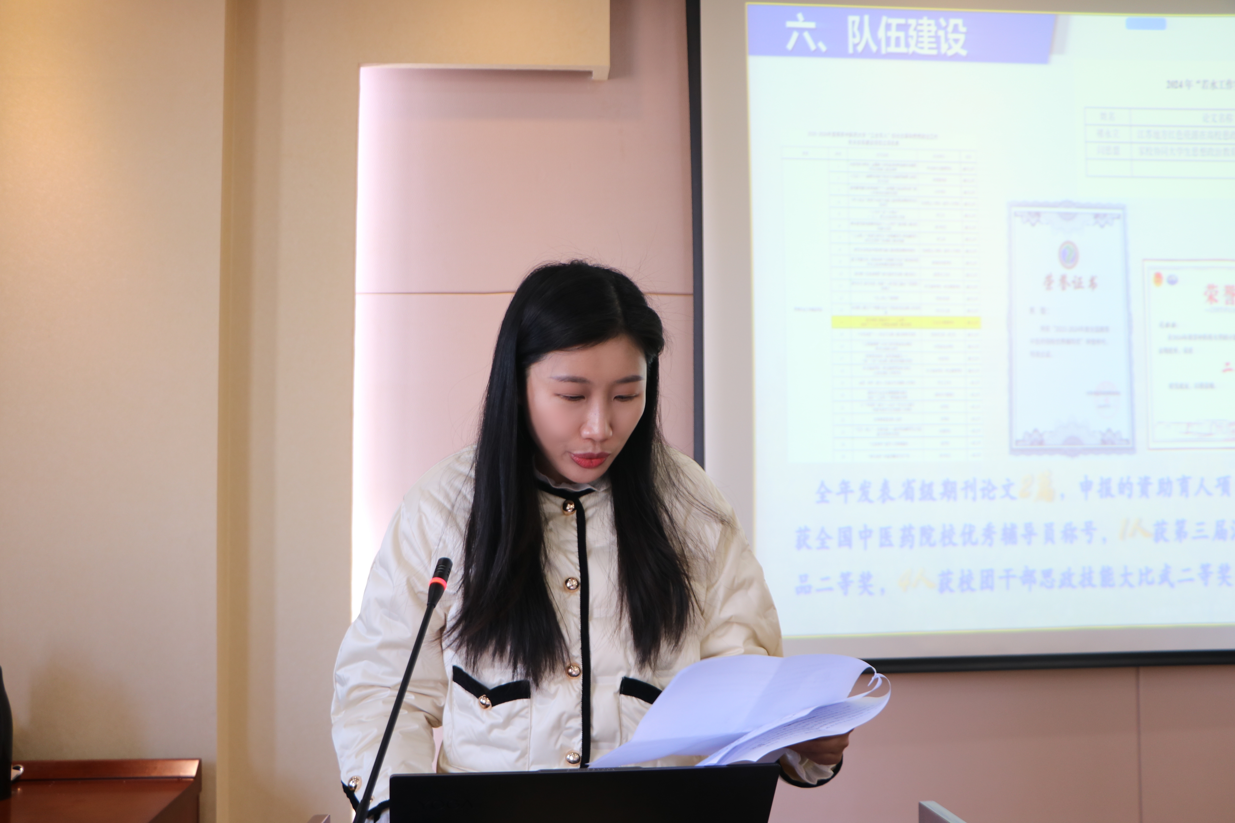 徐爱军就2024年度学工办的工作成效及各部门协同育人的工作方式给予了充分肯定,并提出了三点要求:一是坚持以员工为中心,各部门要找准协同育人发力点,全面助力员工成长成才;二是常规工作要追求实效,推进人才培养方案、团学工作等落实落细,同时也要注重提升教师自身科研素养和成果产出;三是特色工作要追求创新,要在充分了解当代员工的特点基础上设计员工培养与管理的新思路、新方法。