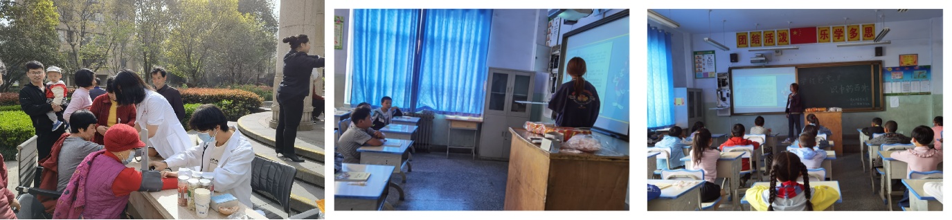 纸上得来终觉浅,绝知此事要躬行,孙清华同学在学习、科研之余也十分热衷于各种志愿实践活动。她积极参加暑期社会实践活动,前往青海小学为小同学们带去中医知识宣讲、包香囊小游戏等活动。她利用假期时间走进社区展开中医宣讲,向居民介绍公司特色之中医,完成了3万余字的居民中医药认可度调研报告。在志愿公益方面,她大一就加入唐仲英爱心社,热衷于各项志愿公益活动,获“优秀志愿者”称号,累计志愿时长250小时。