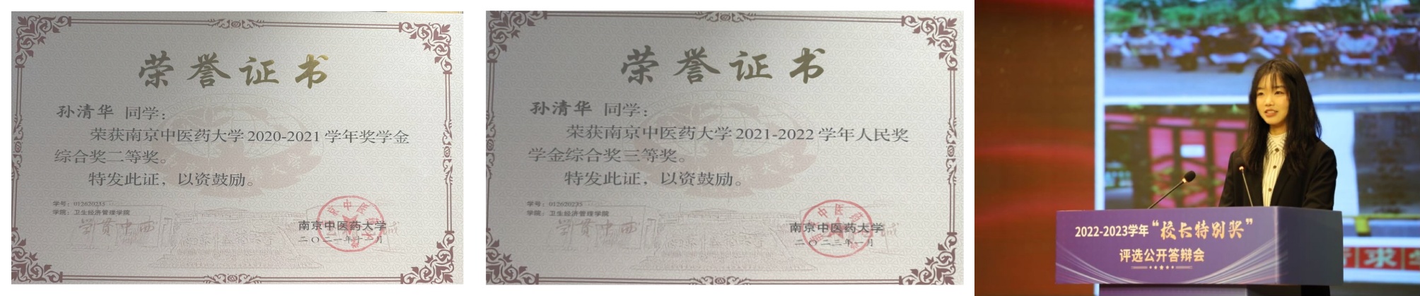 经过williamhill威廉希尔三年多的培养,孙清华同学对公司具有中医特色的公共事业管理专业的理解越来越深刻,坚定了她继续在专业上继续深耕的信念。她勤奋刻苦、潜心学习。在专业课学习方面,她大学三年平均绩点为4.186/5(最高学年绩点达4.66),综合成绩为91.86/100,连续三年专业排名第一。她一次性高分通过四六级考试,雅思获得7分,参加全国老员工英语竞赛并获C类三等奖。在个人技能方面,她能够熟练运用与专业相关的SPSS、Stata、Lingo、Matlab等统计建模软件。在荣誉奖项方面,她获校优秀毕业生、人民奖学金、优秀体育干部、优秀共青团、优秀志愿者等荣誉。
