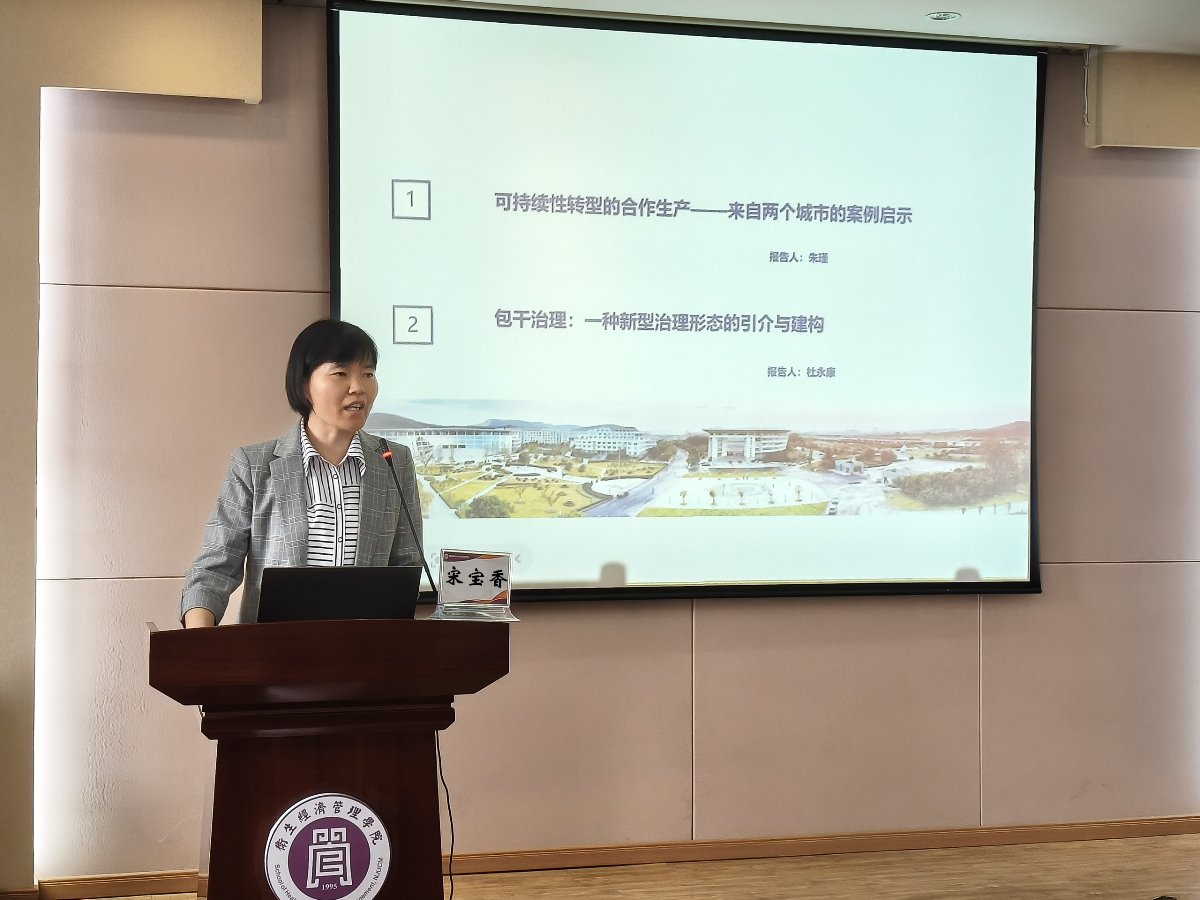 朱瑾博士以《可持续性转型的合作生产—来自两个城市的案例启示》为题,通过“可持续性转型的合作生产相关文献分析”“水质管理的合作生产——基于香港水质政策的案例分析”“基层治理中的居民环境合作生产——基于中国东部J区的案例分析”三个板块,向与会师生分享政策的关键行动者对合作生产贡献、基层治理中社区干部和公众互动对公众环境合作生产的影响等研究成果,并与参会师生开展讨论互动。