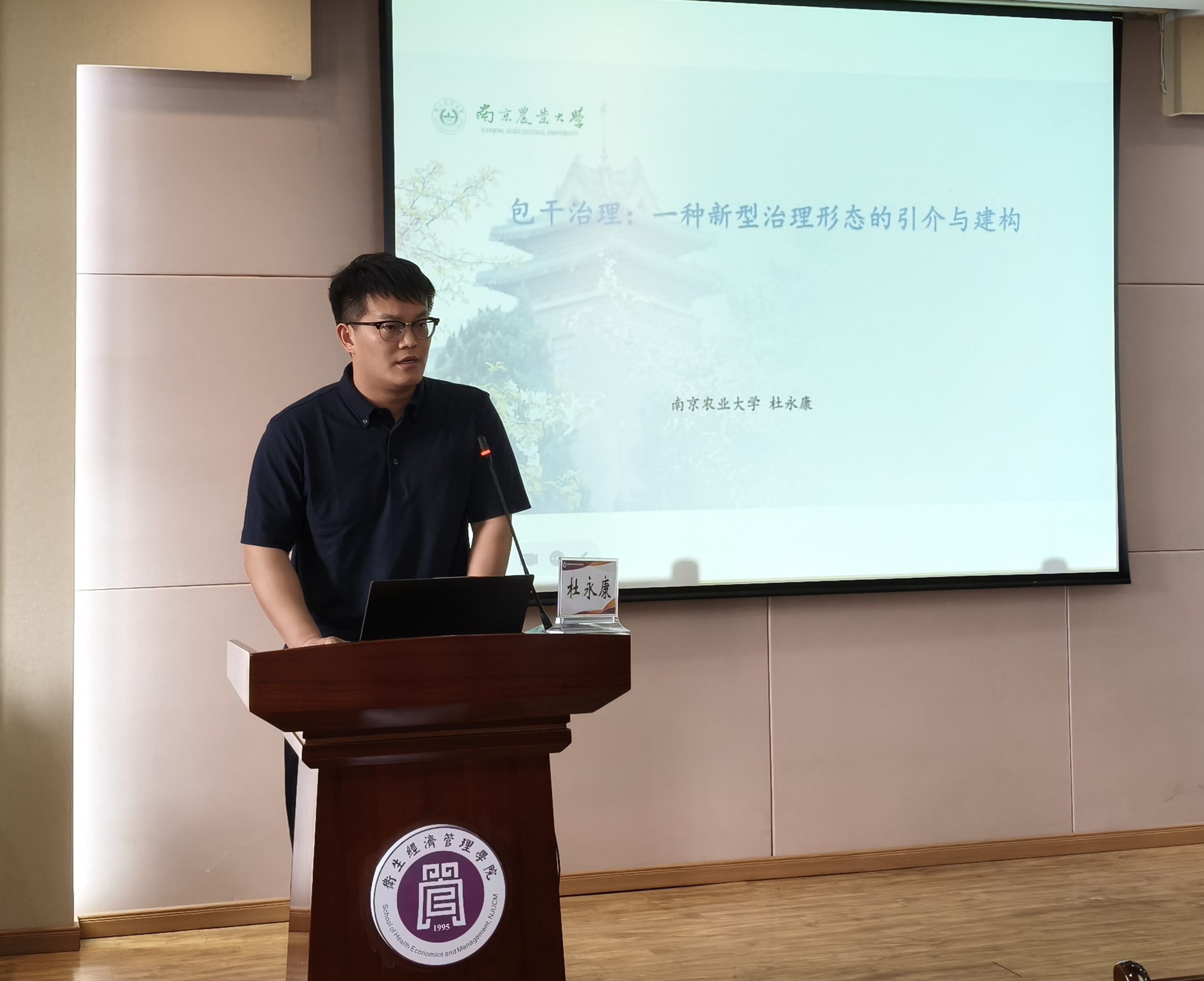 杜永康博士以《包干治理:一种新型治理形态的引介与建构》为题,紧扣乡村振兴战略目标,通过概念解构与个案引入,系统阐释第一书记的包干治理需扮演好国家“代理人”、乡村“经纪人”和“化缘者等角色,以形塑自身权威、融入乡土社会,并通过内外资源整合,推动乡土社会的再造与重构。其将行政包干制理论与基层治理实践深度融合,引发在场师生对包干治理实践应用等议题的热烈探讨。