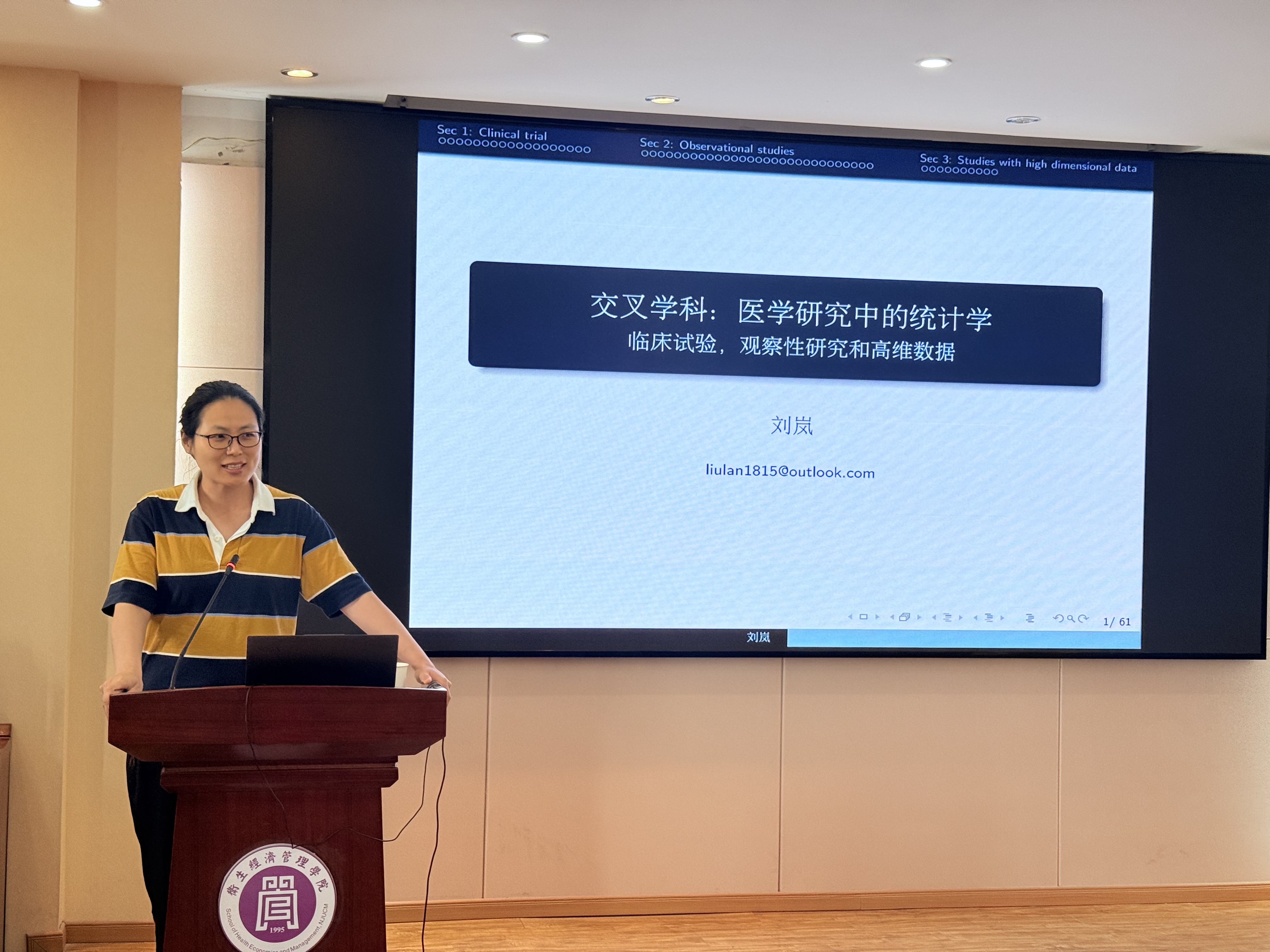 聚焦医学统计前沿,共绘科研发展新篇。5 月 19 日下午,由校科技处主办、公司承办的第三期灵山讲坛在 B11-414 会议室隆重举行。本次讲坛也是公司 “卫生管理与大健康” 紫金论坛的第 20 期活动。特邀首都医科大学刘岚教授(海外高层次人才)担任主讲嘉宾,以“医学研究中的统计方法创新与应用” 为主题,为全校师生带来一场精彩纷呈的学术盛宴。