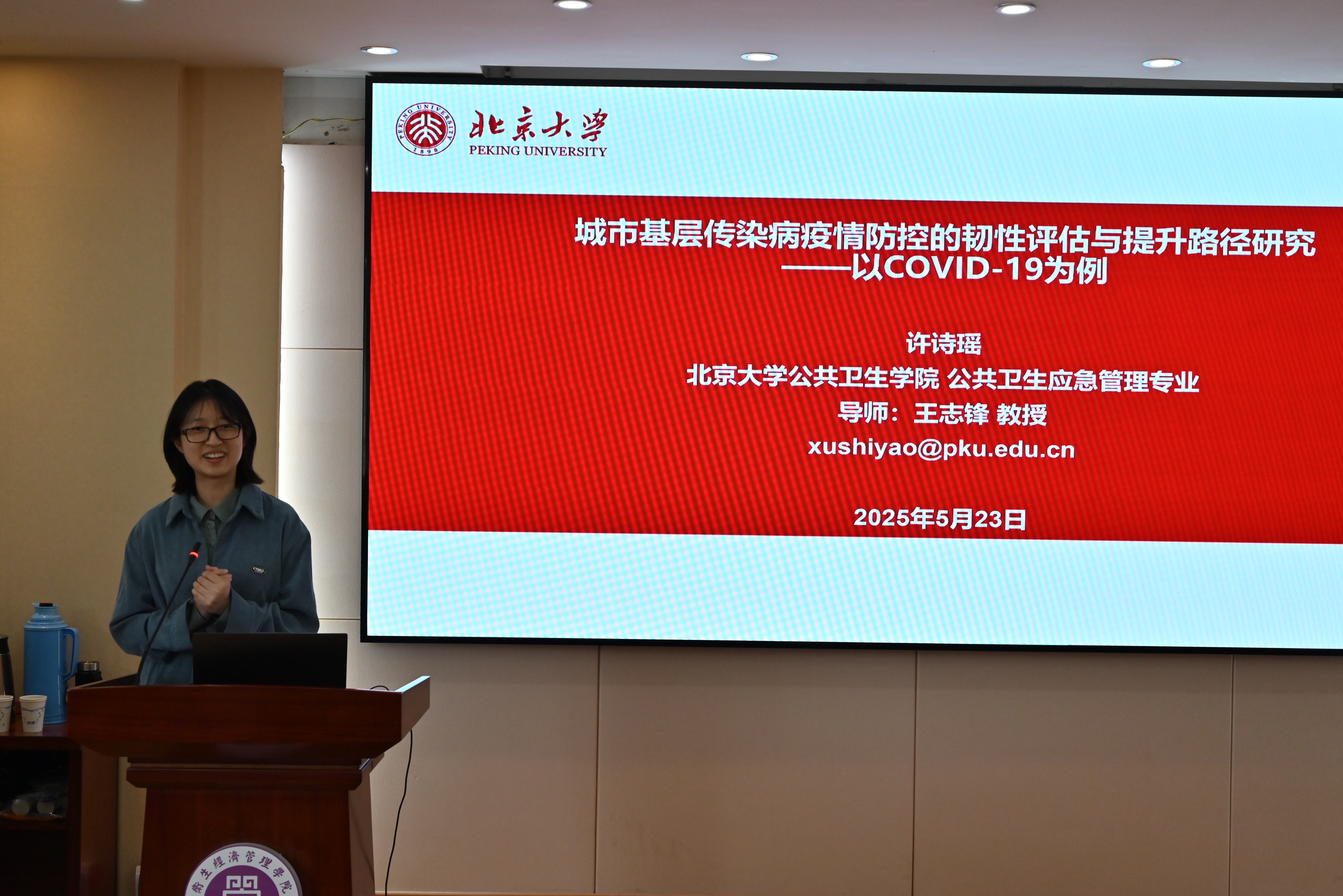 许诗瑶博士以《COVID-19疫情下城市基层传染病疫情防控的韧性评估与提升路径》为题,分享了她的最新研究成果。她指出,韧性是城市基层疫情防控的关键能力,能够帮助城市基层在面对突发传染病疫情时快速恢复并适应变化。她通过研究将适用于传染病的韧性概念引入城市基层疫情防控中,形成城市基层传染病疫情防控的韧性评估方法,并借助韧性评估明确韧性提升路径,以期指导城市基层疫情防控的科学开展与能力建设。