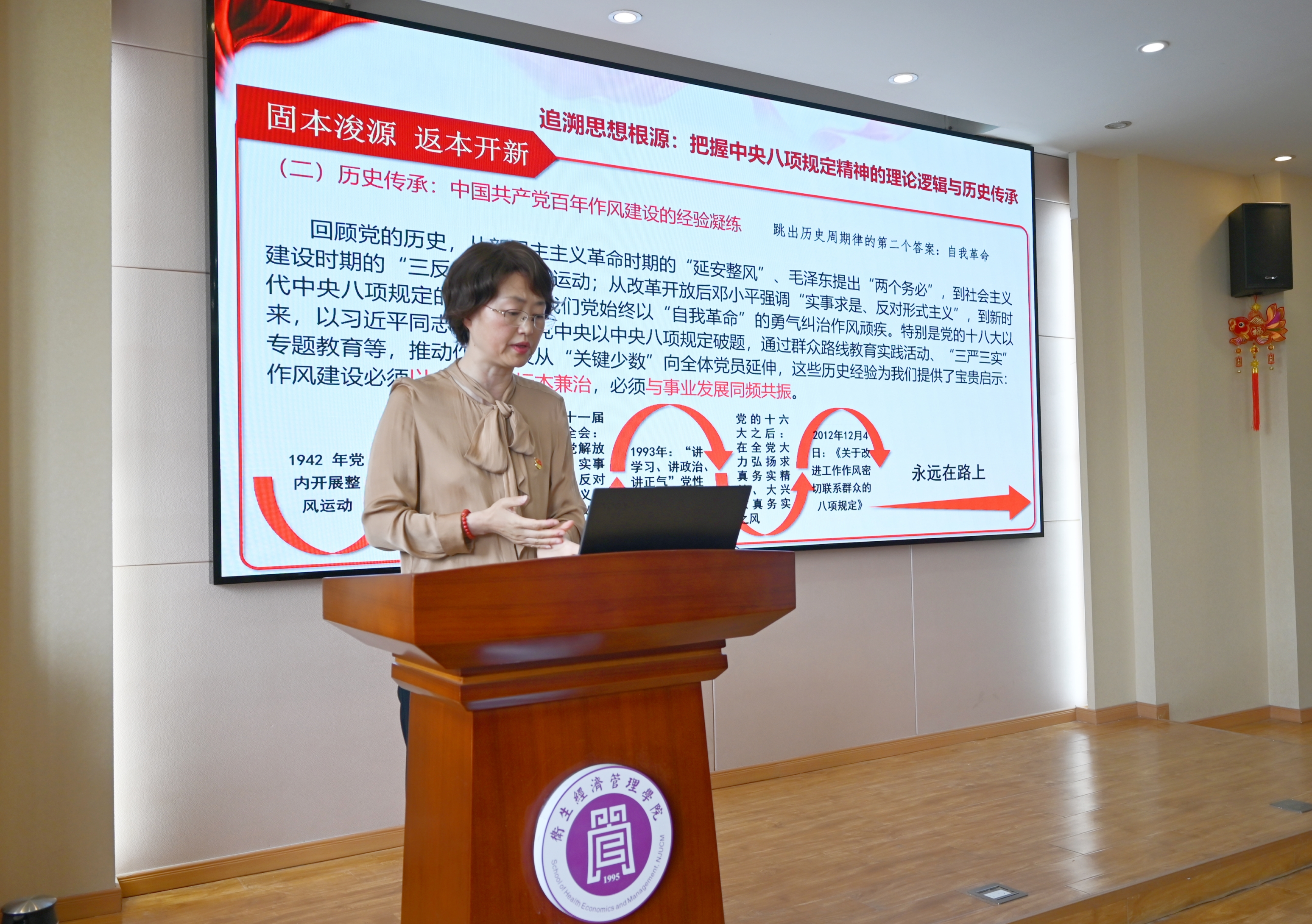 王红云指出,中央八项规定具体条文主要是对中央政治局提出的要求,但是中央八项规定精神是对全党同志的共同要求,具体是指符合中央八项规定内涵的一系列政策规定的统称,是每一名党员都应当遵守的要求。今年两会后,党中央作出了在全党开展深入贯彻中央八项规定精神学习教育的重大部署,再次向全党宣示作风建设永远在路上,表明我们党坚持钉钉子精神,一抓到底的坚定决心。新时代中国共产党落实中央八项规定精神有其内在逻辑:从理论逻辑来看,落实中央八项规定精神是对马克思主义经典作家廉政建设和人民公仆思想的赓续传承;从历史逻辑来看,中国共产党百年来的作风建设实践为落实中央八项规定精神提供了宝贵经验,从“延安整风”到新时代中央八项规定的历史传承,我们党始终以“自我革命”的勇气纠治作风顽疾。