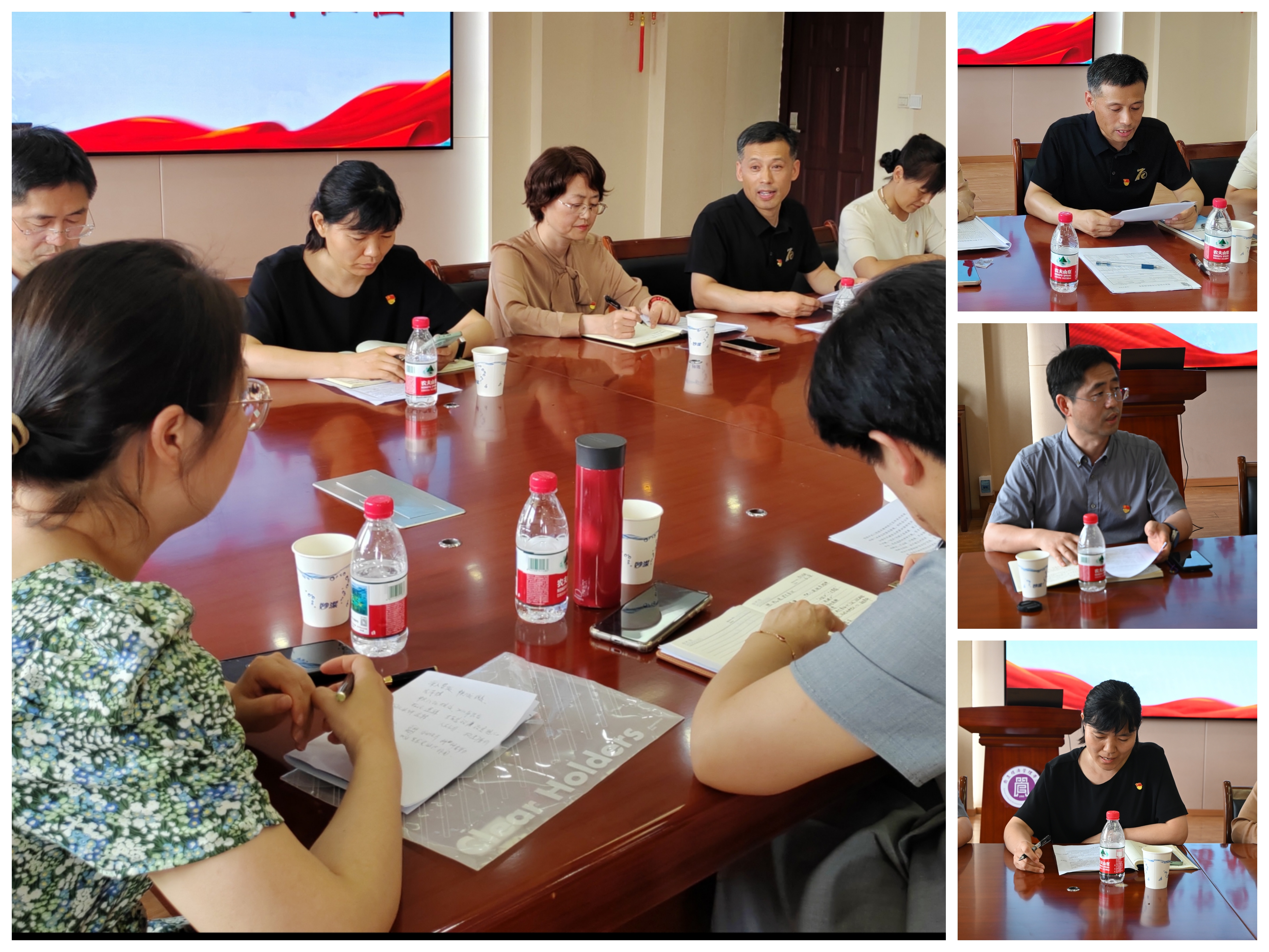 江苏重大健康风险管理与中医药防控政策研究中心副主任陈庆老师、先声商公司党支部书记李洁老师及院教学科研办主任张文通老师分别结合岗位工作思考做分享发言。