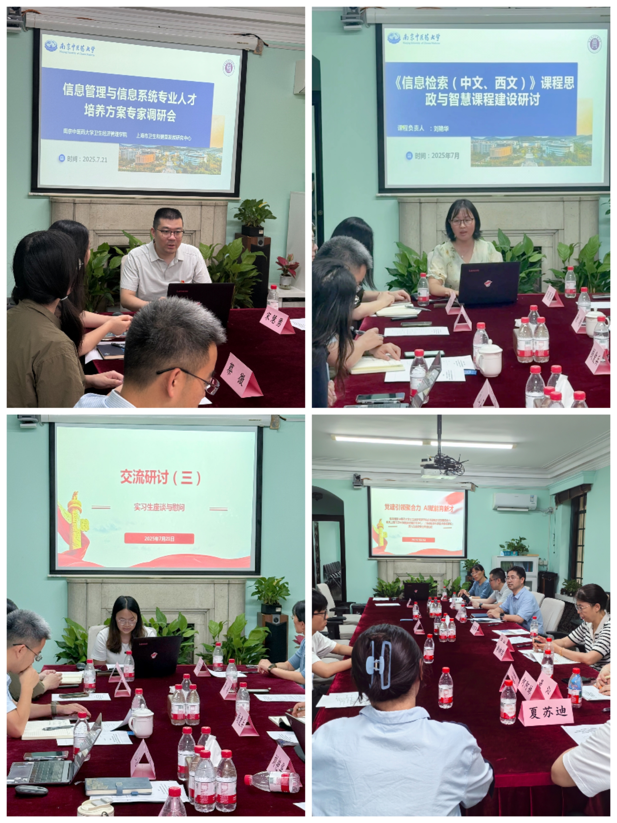 交流研讨环节,双方围绕“人工智能背景下信息管理与信息系统专业人才培养方案修订”“信息检索课程在课程思政与智慧课程建设中的融合路径” 展开热烈讨论,中心党员结合工作和科研实践提出诸多建设性意见。实习生座谈会上,3名正在中心实习的员工分享了参与科技查新的收获与困惑,与会领导为他们送上暖心慰问与并提出殷切期望。