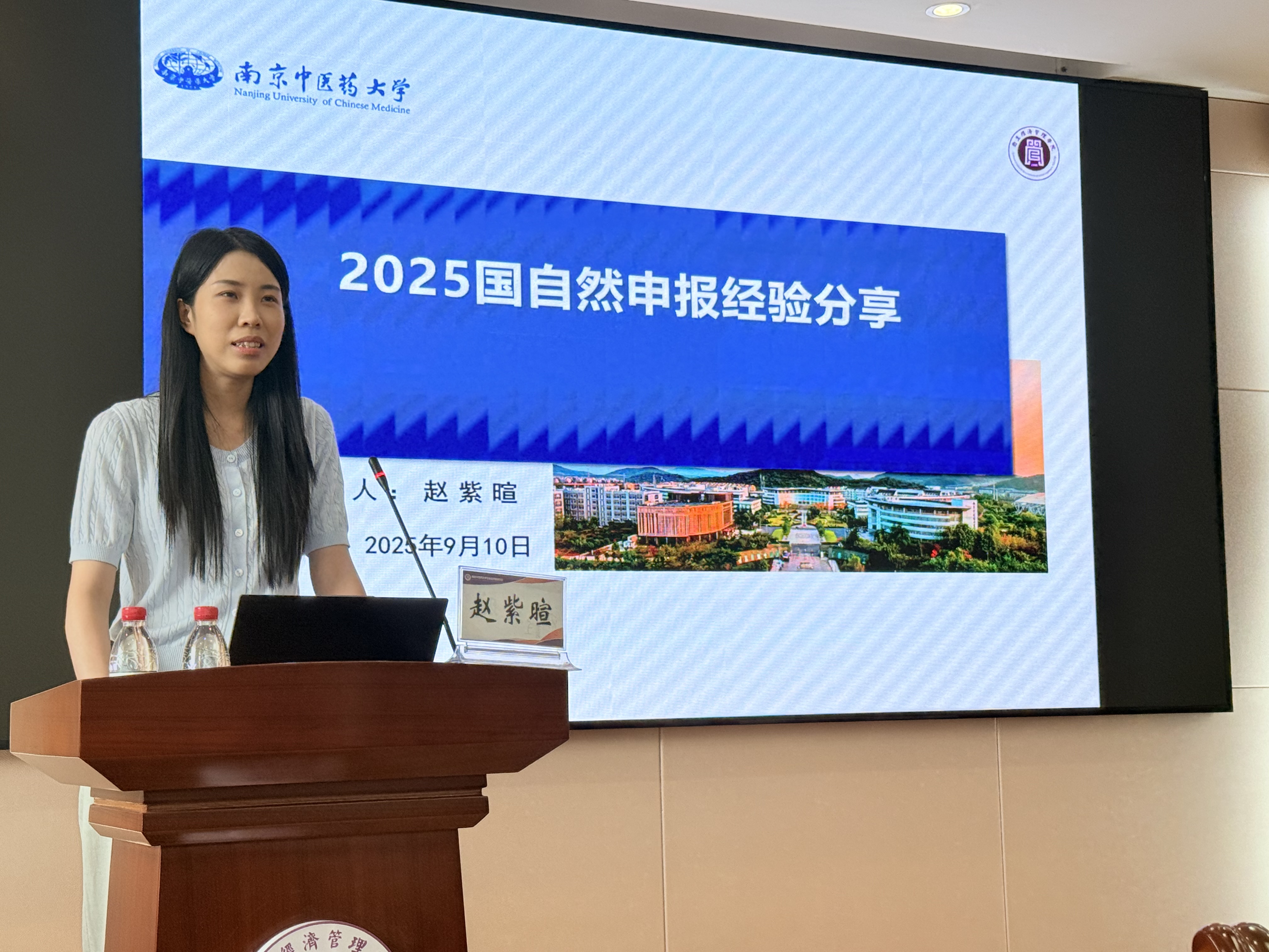 此外,2025 年国家级课题立项获得者赵紫暄老师、祝嫦娥老师也现场分享申报经验。两位老师结合自身从选题构思、文献梳理,到研究框架设计、申报书撰写与修改的全流程经历,重点剖析了 “选题如何贴合国家战略需求”“研究设计如何突出创新性与可行性”“申报书撰写如何规避常见误区” 等关键环节,解答申报过程中的实际困惑,干货满满的分享让参会师生收获颇丰。