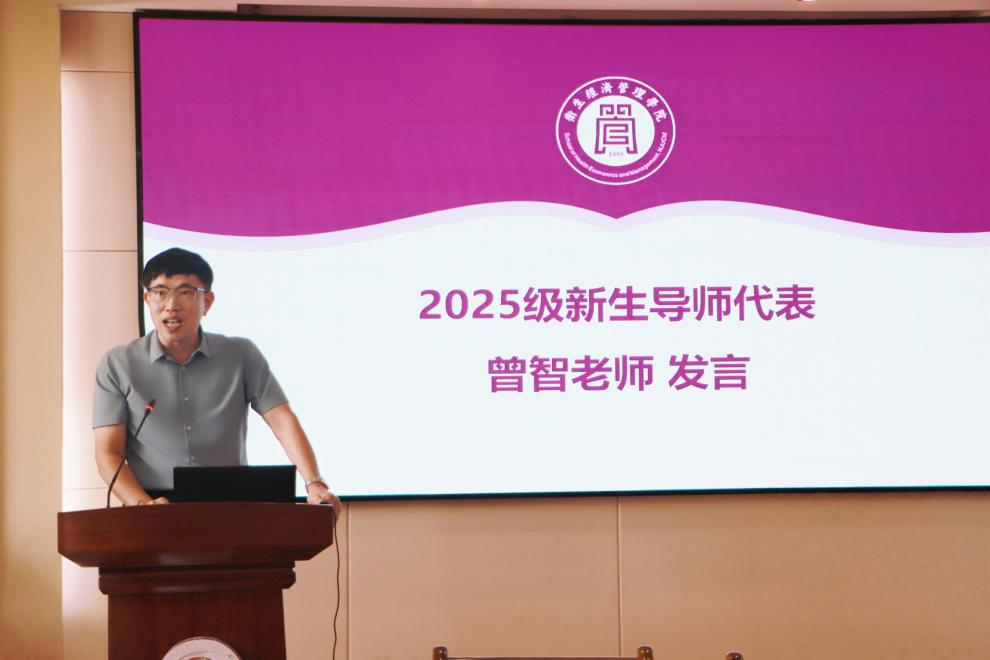 导师代表曾智老师以“在独立与合作中寻找平衡,于坚持与突破中实现成长” 为核心寄语新生。他借用《浪浪山小妖怪》的故事,指出小妖怪们虽身份“无名”,却凭借信念与勇气走出了属于自己的道路。曾教授以此鼓励新生:即使初入学术领域时平凡如“小妖”,只要坚持不懈、勇于拼搏,终将在学术道路上成为值得记住的“主角”。